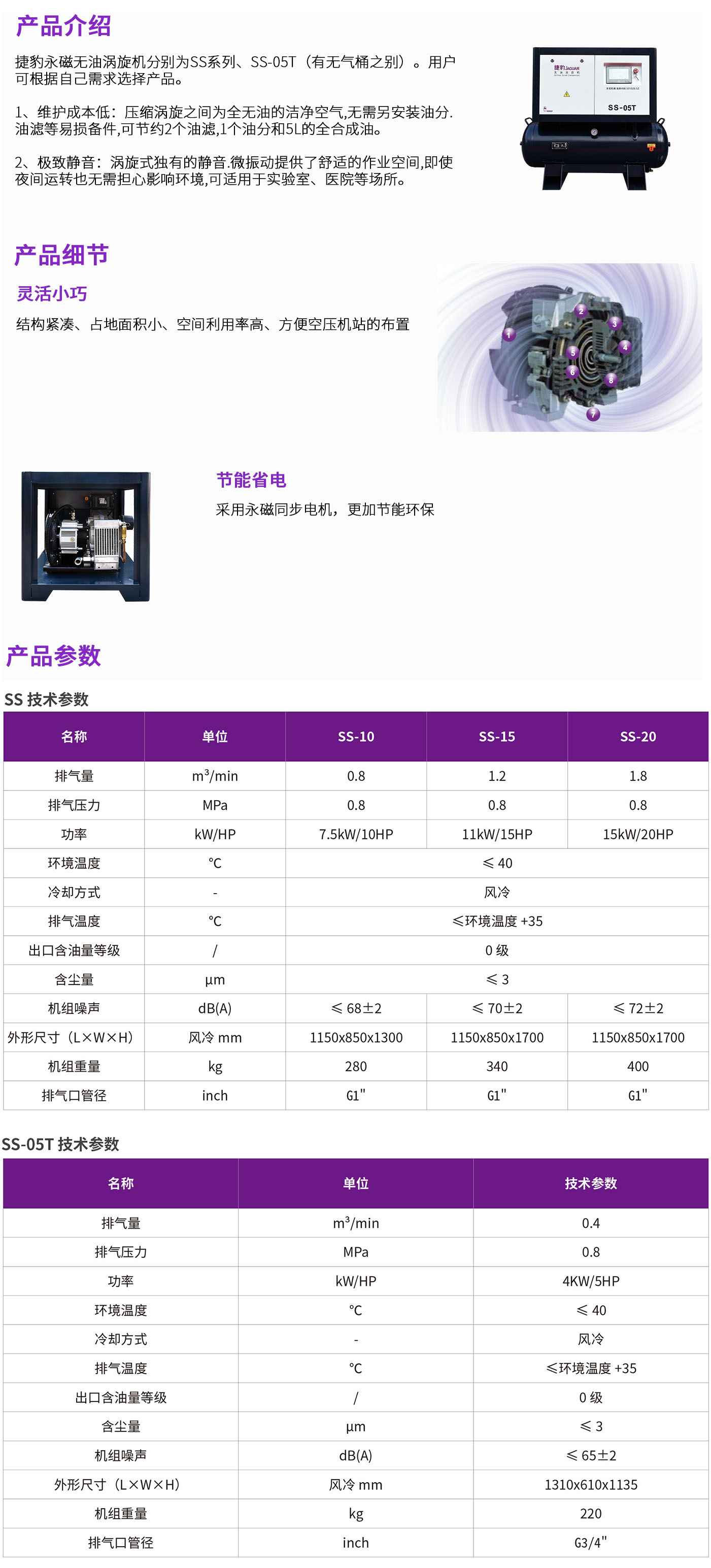 捷豹永磁无油涡旋机(SS系列)