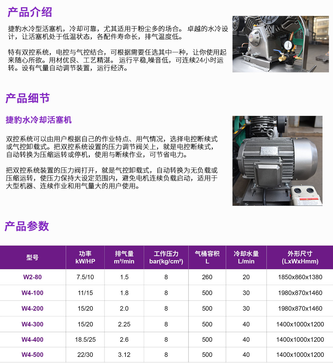 捷豹水冷却 W2/W4活塞机,为各行各业提供稳定输出气体,助力企业稳定生产。现广泛应用于机械、汽车、冶金、矿业、食品、化工、轻纺等工业各个领域。